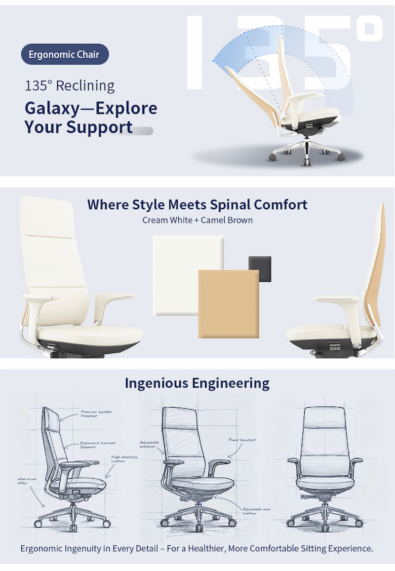 OFC designers spent a year meticulously crafting the Galaxy Office Chair. Imagine a late-night terrace, a starry sky drifting into your dreams. A sudden inspiration struck: to imbue the office chair with the gentle comfort of a galaxy. After interviewing hundreds of office workers, they drew inspiration from the Milky Way's curves for ergonomic support.