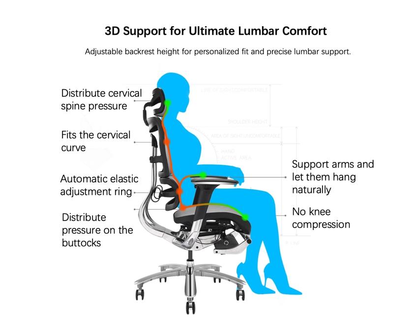 Adjustable Backrest & Lumbar Support: Fine-tune the height and depth of the lumbar support to follow your spine's natural curve.